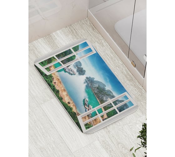 Коврик противоскользящий JoyArty "Окно на берегу" для ванной, сауны, бассейна, bath_7787