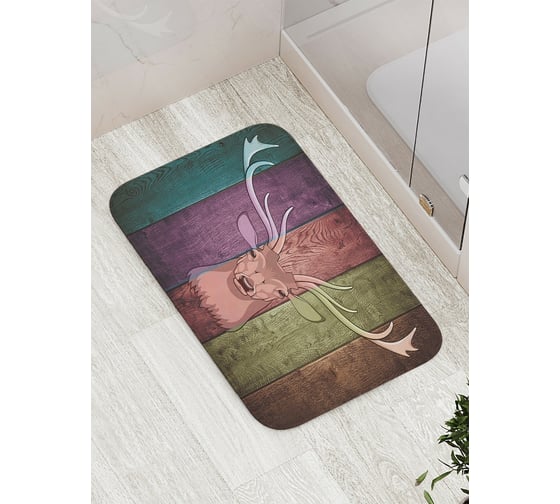 Коврик противоскользящий JoyArty "Олень на деревянных досках" для ванной, сауны, бассейна, bath_5479