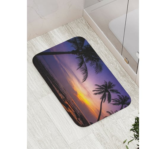 Коврик противоскользящий JoyArty "Пляж с пальмами на закате" для ванной, сауны, бассейна, bath_4491