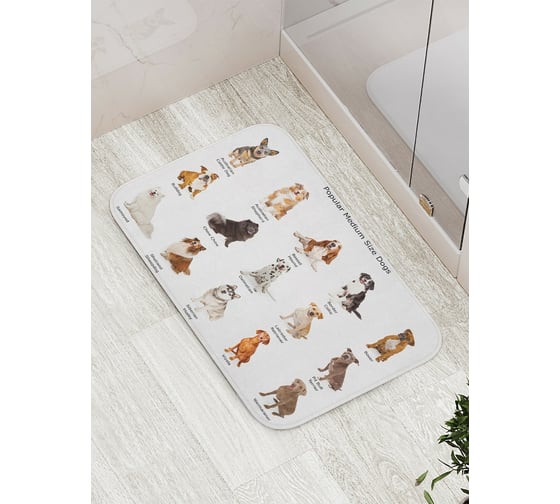 Коврик противоскользящий JoyArty "Породы собак среднего размера" для ванной, сауны, бассейна, bath_14794