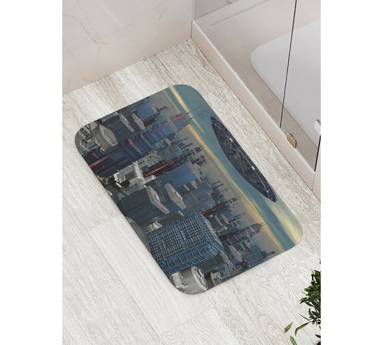 Коврик противоскользящий JoyArty "Пришельцы над мегаполисом" для ванной, сауны, бассейна, bath_6800
