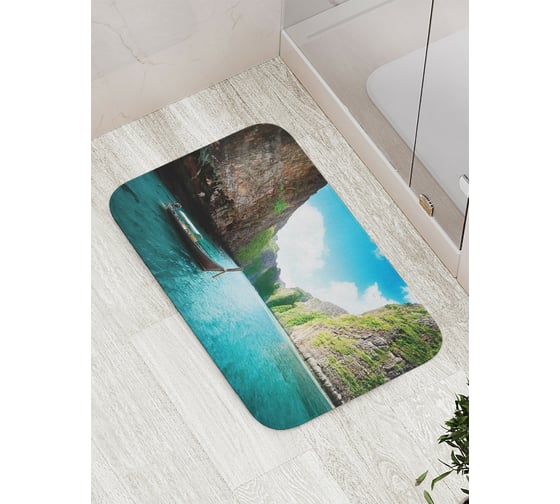 Коврик противоскользящий JoyArty "Речная переправа" для ванной, сауны, бассейна, bath_6609