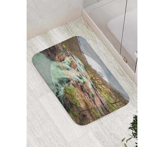 Коврик противоскользящий JoyArty "Река и скалы" для ванной, сауны, бассейна, bath_5021