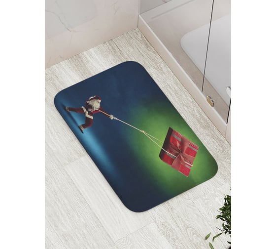 Коврик противоскользящий JoyArty "Санта тянет подарок" для ванной, сауны, бассейна, bath_5745