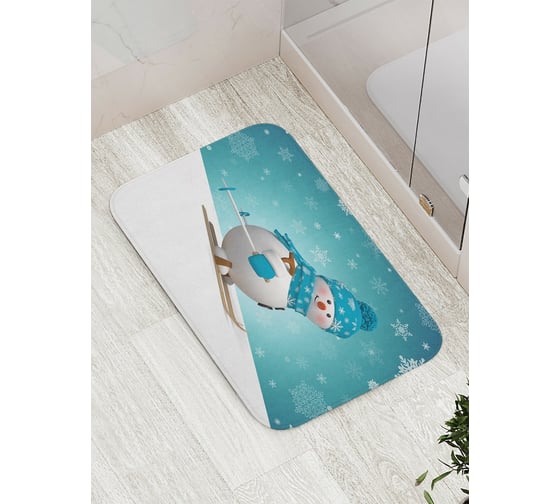 Коврик противоскользящий JoyArty "Снеговик лыжник" для ванной, сауны, бассейна, bath_6135