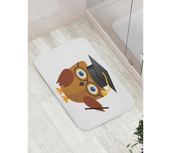 Коврик противоскользящий JoyArty "Сова-ученый" для ванной, сауны, бассейна, bath_4505