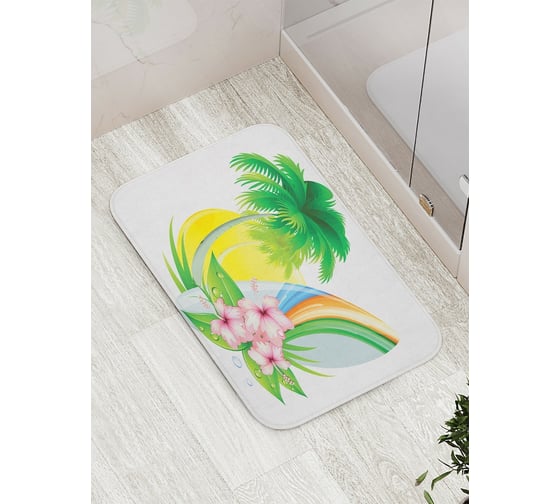 Коврик противоскользящий JoyArty "Цветы под пальмой" для ванной, сауны, бассейна, bath_15636