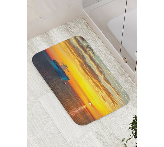 Коврик противоскользящий JoyArty "Туристы едут на закат" для ванной, сауны, бассейна, bath_17819