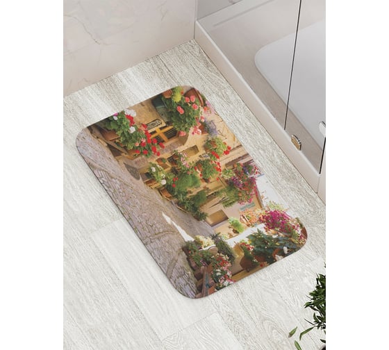 Коврик противоскользящий JoyArty "Улица с цветочными горшками" для ванной, сауны, бассейна, bath_G17