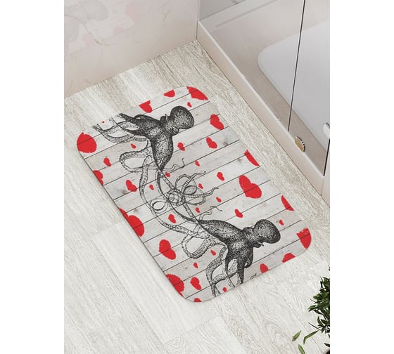 Коврик противоскользящий JoyArty "Влюбленные осьминоги" для ванной, сауны, бассейна, bath_7422