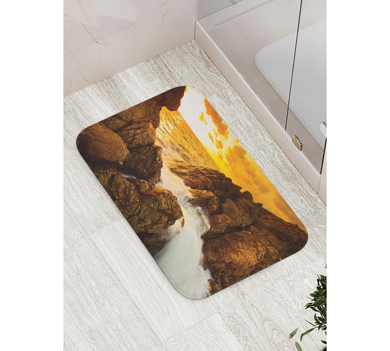 Коврик противоскользящий JoyArty "Волны накрывают гору" для ванной, сауны, бассейна, bath_15341