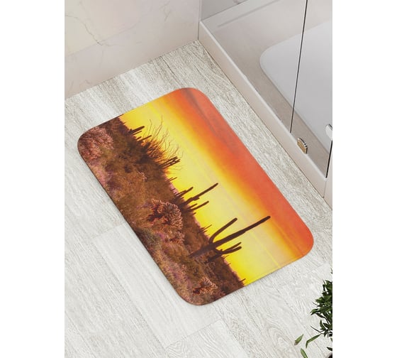Коврик противоскользящий JoyArty "Закат возле кактусов" для ванной, сауны, бассейна, bath_15718