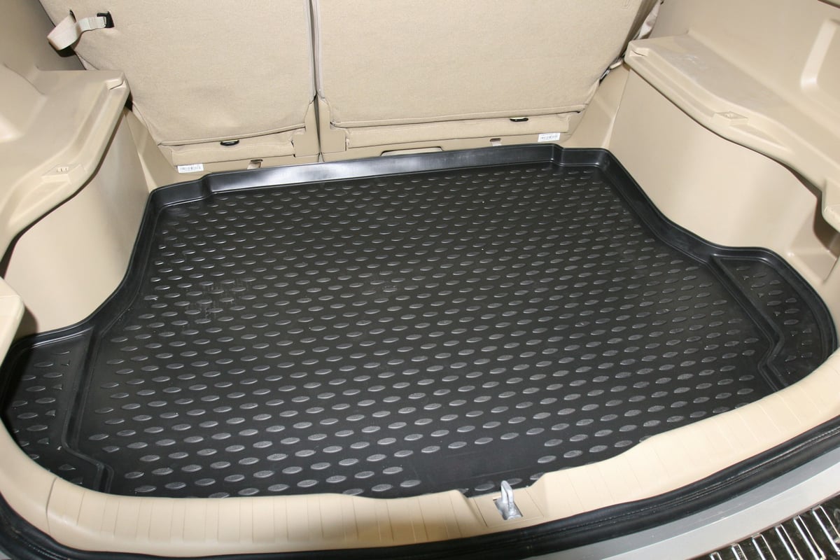 Коврик в багажник необходимый аксессуар для защиты напольного покрытия багажника от грязи и повреждений. Изготовлен для конкретной модели автомобиля, благодаря чему идеально повторяет геометрию пола. Изделие выполнено из прочного, легкого и эластичного полиуретана, не наносящего вреда человеку. Коврик имеет высокие борта, защищающие элементы интерьера. Объемный рисунок придает модели стильный внешний вид.