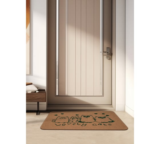 Коврик влаговпитывающий ComeForte ЧЕТЫРЕ КОТА, велюр, 60x90см, бежевый TCLR/W-1909