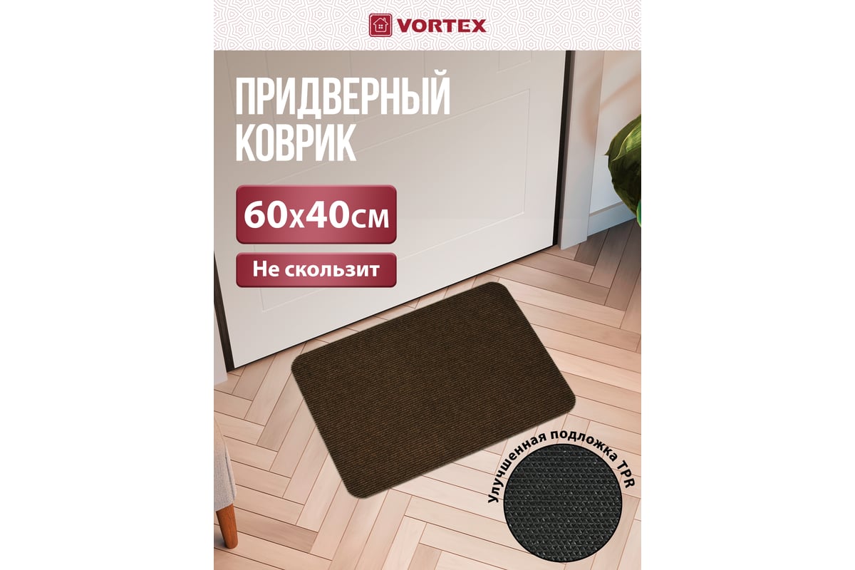 Коврик влаговпитывающий Vortex ребристый "Slim", без борта, подложка tpr, 40х60 см, коричневый 24384