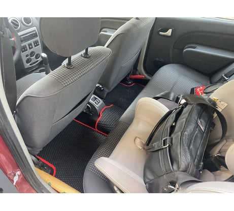 Вероятнее всего данные коврики универсальные, потому что было несколько моментов, один из них даже критичный: 1. Нет прорези на ковре под педаль сцепления. Во-первых нет полного выжима из-за толщины ковра (это проблема скорее бля тех, у кого очень старое сцепление и берет в конце) Во-вторых это то, что педаль попадает между ковриком и просто блокируется, при движении это «ни весело». В итоге пришлось распороть красную окантовку, сделать вырез под педаль сцепления и пришить/приклеить окантовку. (Фото прилагаю) 2. Точно такая же ситуация с педалью газа… Из-за коврика нет полного выжима педали (думаю можно так же сделать вырез, но мне просто уже лень было снова возиться. 3. На водительском коврике 2-е клипсы одна из которых не попадает в отверстие, ну хоть не одном держится.
