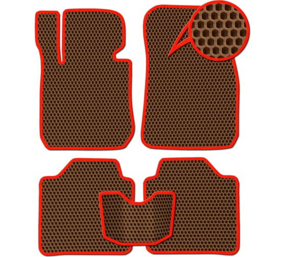 Ковры в салон автомобиля Eva Smart mazda 2 (de) правый руль 2010 - 2015 эва сота коричневые c красной окантовкой 3027-A6A7-S