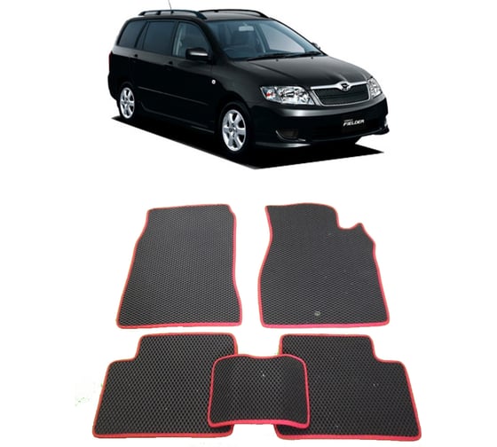 Ковры в салон автомобиля Eva Smart toyota corolla fielder (nze 124) правый руль 2000 - 2006 эва сота бежевые c красной окантовкой 2392-A1A7-S отлично защищают от грязи. Легкие, эргономичные и долговечные. Внимание! Цвет модели может отличаться от представленного на фото. Верный цвет указан в наименовании.