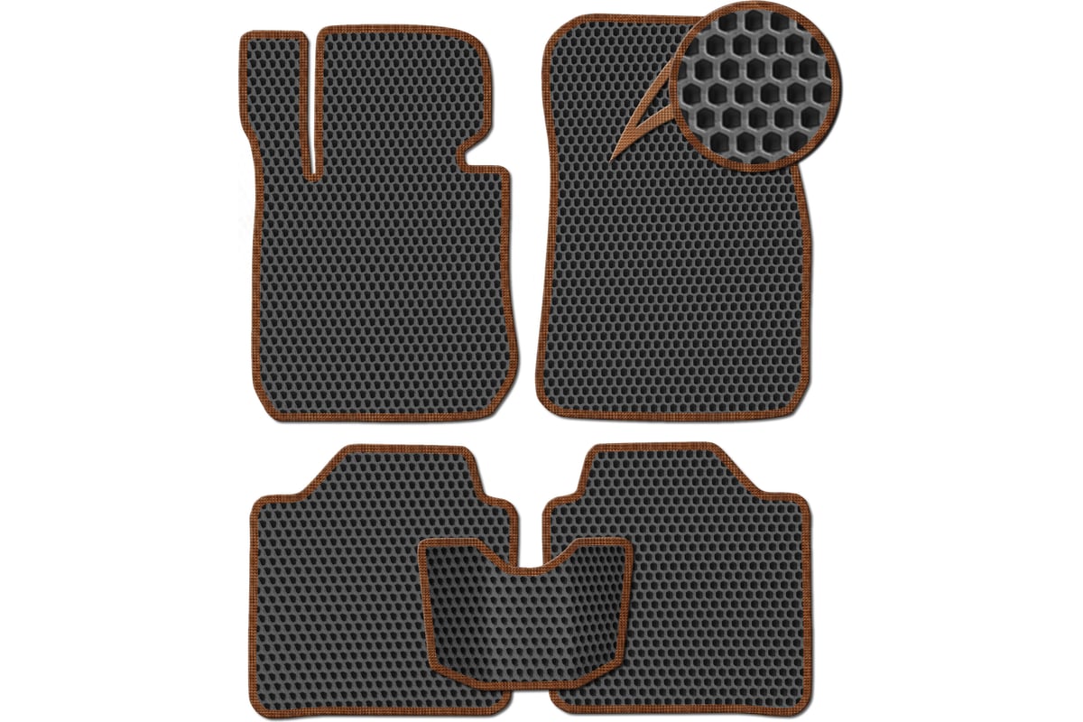 Ковры в салон автомобиля Eva Smart volkswagen polo v седан 2009 - 2020 эва сота чёрные c коричневой окантовкой 1879-B5A6-S