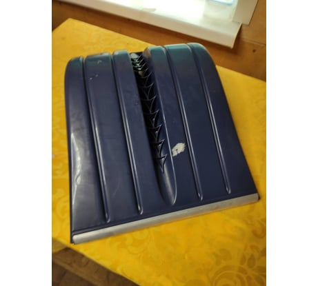 Пластик прочный и морозостойкий. Форма как у Fiskars/Plantic, а размеры чуть больше (на фото можно сравнить). Вначале насадил на черенок от Fiskars, но потом переставил на более длинный - мне так удобнее. Использую для очистки крыш.