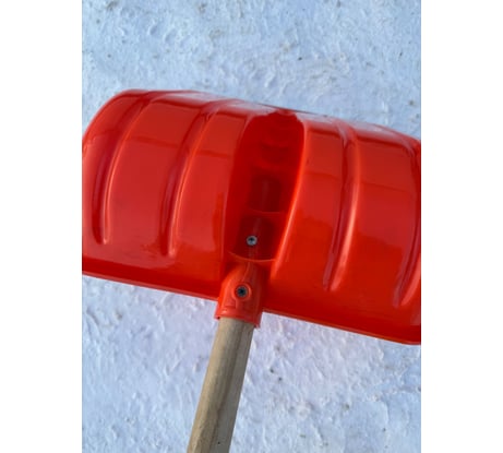 Отличный ковш. Пластик достаточно толстый, чтобы не гнуться под нагрузкой. Загнал два самореза (фото) для надежности, предварительно засверлив черенок тонким сверлом.