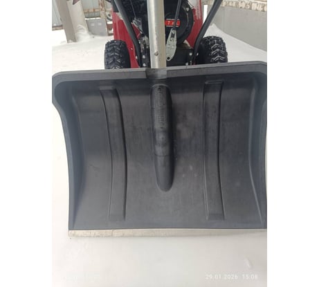 Прочная. Гребёт снег отлично. Покупной черенок сел плотно без подгонки