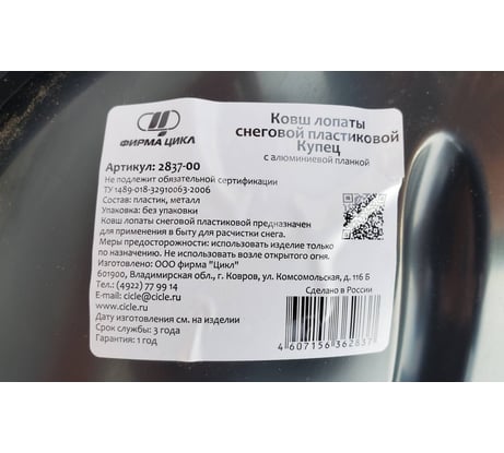 Ковш с планкой к снеговой лопате Cycle Купец 4607156362837
