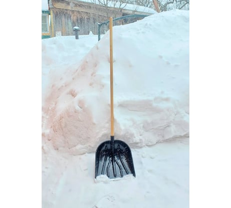 Лопата не идеальная, но по соотношению цена-качество (788 р) вполне хороша. Из минусов - угол атаки очень тупой. т.е. убирать снег, то удобней всего взяв второй рукой у основания и скидывать в сторону. Перед собой снег убирать не удобно. Правильно кто-то писал - хорошо подходит для перекидывания уже готовых куч. Хорошие крепление к черенку, металлическая планка. При желании экономии или использовании как вспомогательной, очень хороший вариант. Как основную и единственную лопату не советовал бы.