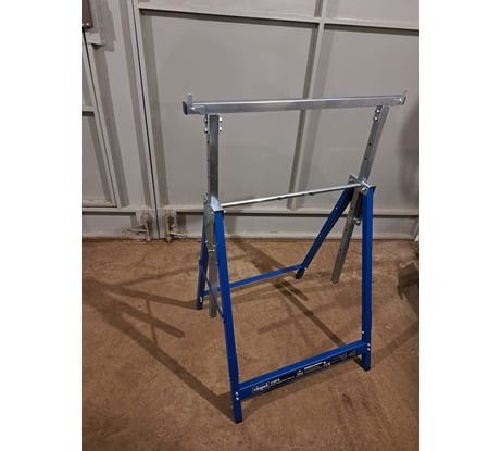 С разницей в неделю приобретены две штуки. Полная комплектация, отсутствие повреждений, простая сборка. Заявленные 200 кг, скорее для статики: основная нагрузка придется на два штыря в 7 мм. Усиления по осевой линии нет. Металл на нижних поперечинах около 1,8 мм с краской. Система подпружиненных штырей для установки высоты подклинивает при перекосах. Складывается не полностью: ножки и центральные опоры не прилегают друг к другу. По конструкции, это аналог складных верстаков. Как основа для распиловочного или выносного стола с несколькими брусками и/или с листом фанеры хороший вариант рабочего места.