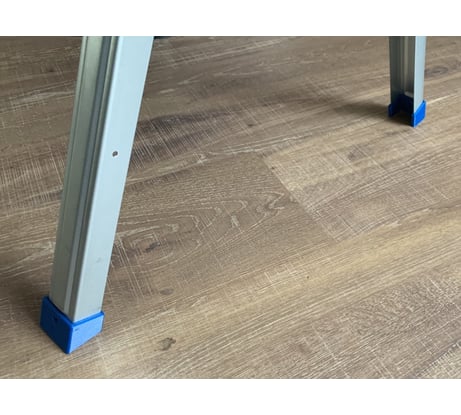 Козлы оснащены телескопическими стойками с подвижными пятками, что дает им возможность установки даже на неровных площадках.