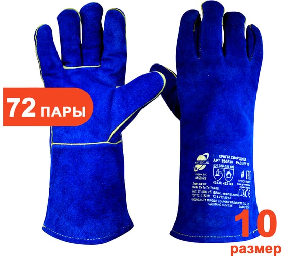 Краги Arcticus ARCTICUS спилк КРС синие АВ, подкл/флис, Kevlar, 35см,коробка 72 пары размер 10, 200520-1072