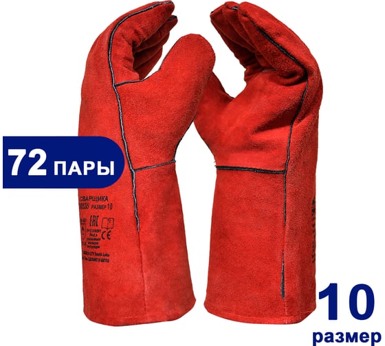 Краги Arcticus спилк КРС красные АВ, подкл/флис, 35 см,коробка 72 пары размер 10, 200535-1072