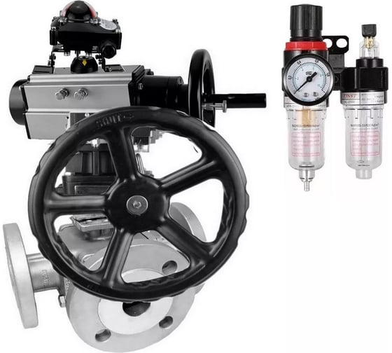 Кран DN.ru 316-316-PTFE-16 3-ход L-тип Ду100 Ру16 пневмораспр, БКВ взрывозащищенный, дублёр, БПВ D160-32789