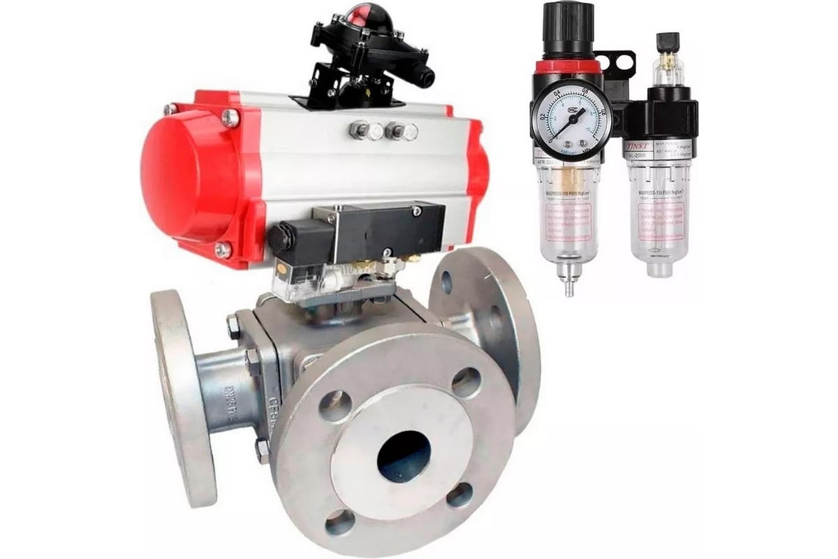 Шаровой кран DN.ru 316-316-PTFE L-тип Ду65 Ру16, пн.привод, пн.распределитель, БКВ, БПВ D160-32282