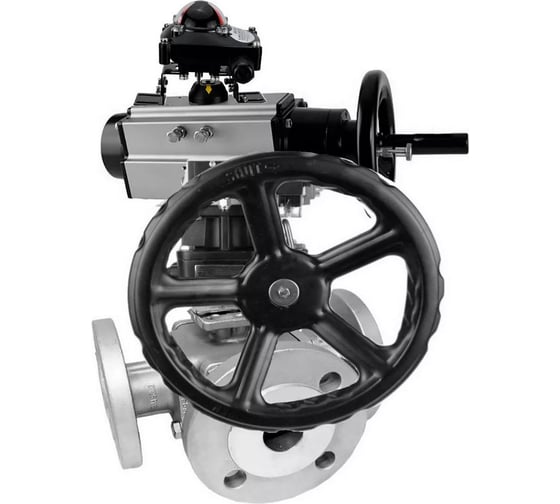 Кран DN.ru 316-316-PTFE-16 ISO 3-ход T-тип Ду100 Ру16 пневмораспределитель, БКВ взрывозащищенный, дублёр D160-34216