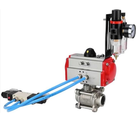 Кран DN.ru 316-316-PTFE-FP-W-ISO-H WDVF Ду20 Ру63 пневмопривод, пневмораспределитель, БПВ D160-69318