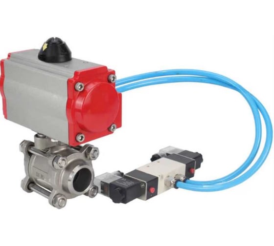 Кран DN.ru 316-316-PTFE-FP-W-ISO-H WDVF Ду32 Ру63 3-составной, пневмопривод, пневмораспр. D160-69196
