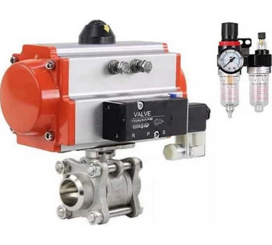 Кран DN.ru 316-316-PTFE-FP-W-ISO-H WDVF Ду32 Ру63, пневмопривод, пневмораспр., БПВ D160-69080
