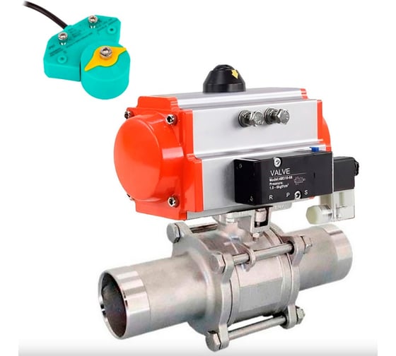 Кран DN.ru 316-316-PTFE-W-ISO-H LONG Ду32 Ру40 пн.привод, пневмораспр, магн. перекл-ль D160-62809