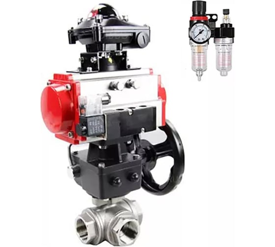 Кран DN.ru RP.SS316.200.MM ISO 3-ход L-тип Ду40 Ру63 БКВ взрывозащ, пневмораспр., БПВ D160-31662