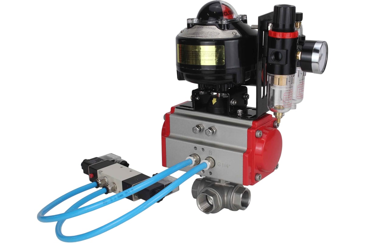 Шаровой кран DN.ru RP.SS316.200.MM L-тип Ду100 Ру40 пневмопривод,пневмораспр,БКВ,БПВ D160-30509