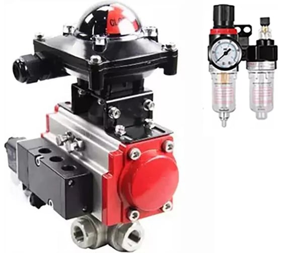 Кран DN.ru RP.SS316.200.MM ISO 3-ходовой, T-тип, Ду40, Ру63, БКВ взрывозащищенный, пневмораспределитель, БПВ D150-00564