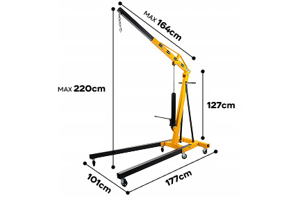 - 500 кг: высота подъема до 220 см, максимальная длина стрелы 164 см