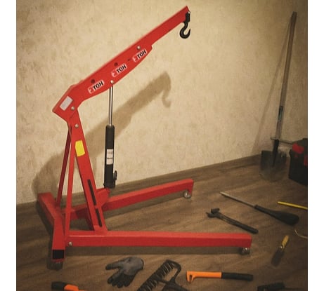 Этот кран брали, чтобы поднять тяжелое оборудование в мастерской. Поначалу думали, что тяжелый и неудобный, но он реально классно работает, плавно и мощно. Например, с его помощью поднимали большой станок с пола на подставку — без крана просто не справились бы.