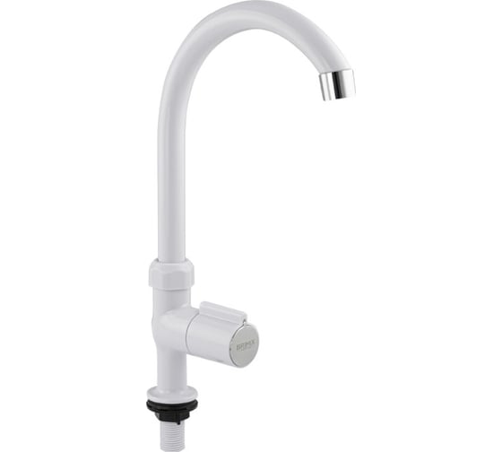 Кран на одну воду, из высокопрочного пластика АБС, белый, с хромированным аэратором для экономии воды, с высоким изливом.