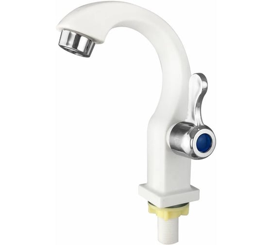 - Кран на одну воду, из высокопрочного пластика АБС, белый, с хромированным аэратором для экономии воды.