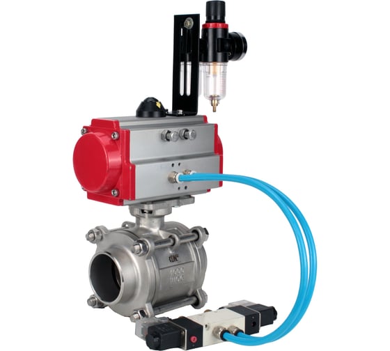 Кран шаровой 316-316-PTFE-FP-W-ISO-H WDVF Ду40 Ру40, пневмопривод SA-105, пневмораспределитель 220VAC, БПВ DN.ru D160-73263