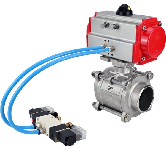 Кран шаровой 316-316-PTFE-FP-W-ISO-H WDVF Ду40 Ру40, пневмопривод SA-105, пневмораспределитель 220VAC DN.ru D160-73248