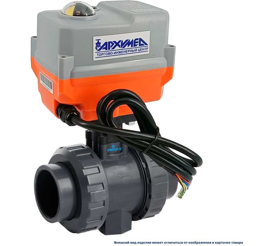 Кран шаровой пластиковый PIMTAS под вклейку, DN25, уплотнение EPDM+PTFE - для слабых кислот с электроприводом Архимед на 220AC, AP30002*2-032.220/50.