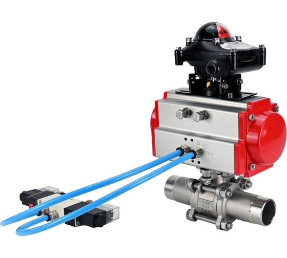 Кран шаровой DN.ru 304-304-PTFE-W-ISO-H Ду10 Ру63 пневмопривод SA-052, пневмораспределитель (2EM) 220VAC, БКВ LSB-210 D160-54668